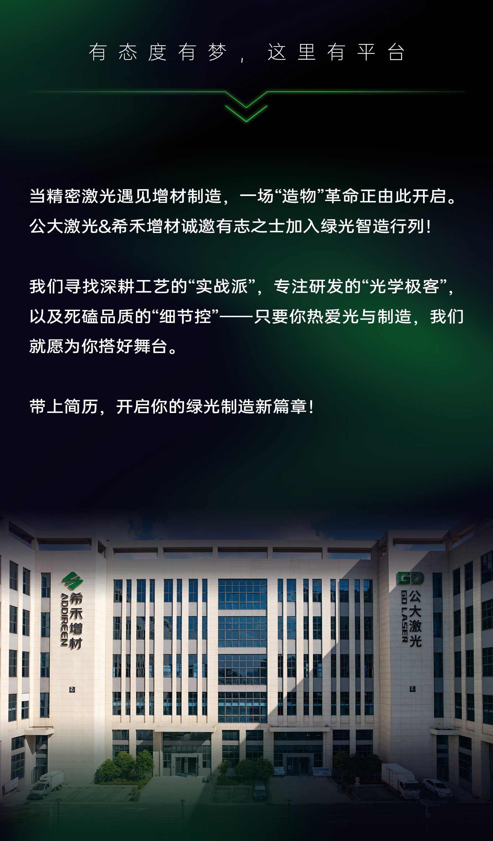 公大激光&希禾增材诚邀有志之士加入绿光智造行列!