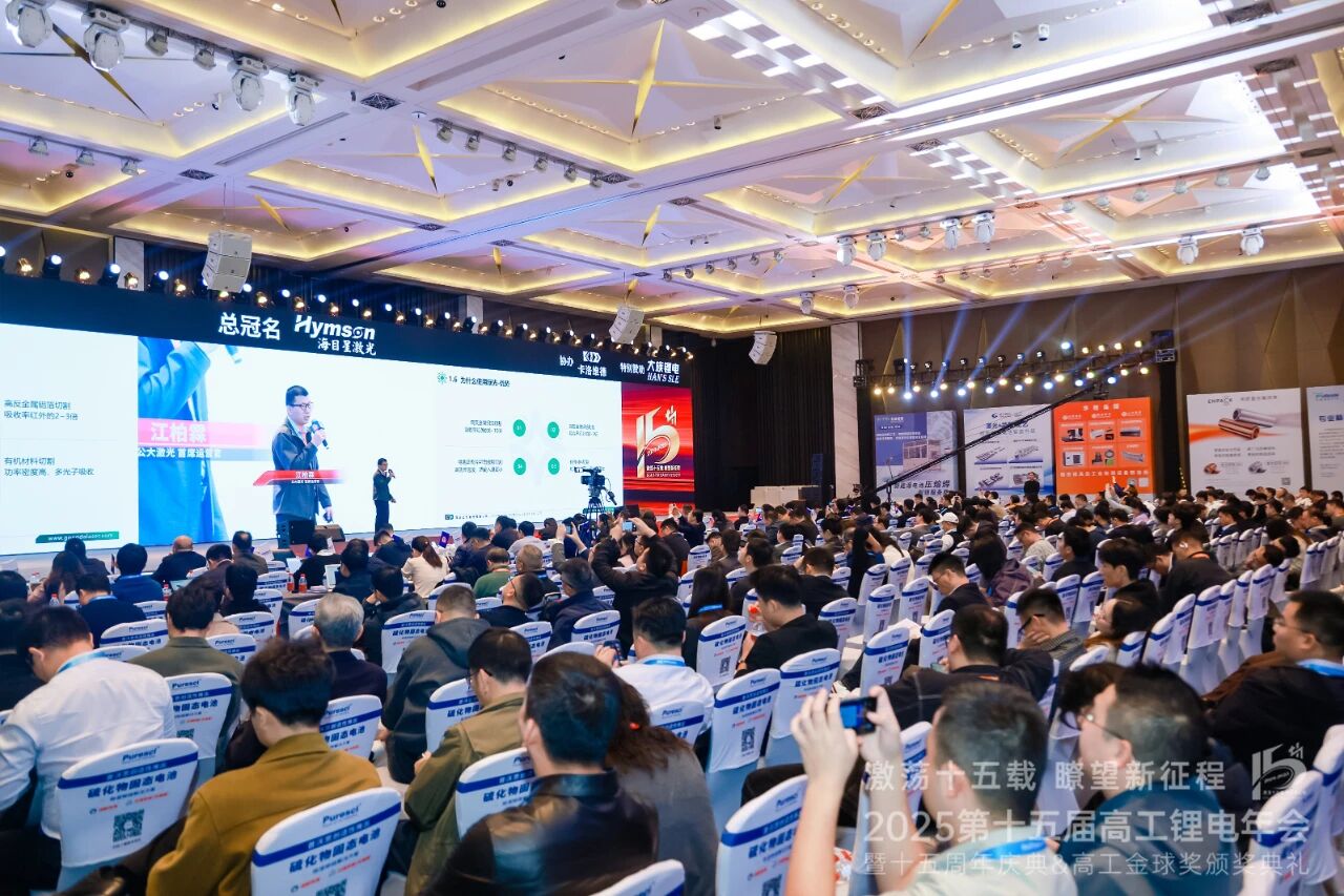 2025年11月18-20日,第十五届高工锂电年会暨十五周年庆典&高工锂电金球奖颁奖典礼在深圳前海华侨城JW万豪酒店成功举办。作为国内唯一实现高功率绿光光纤激光器大规模批量工业化应用的企业,公大激光携多款明星绿光产品亮相,并由公司首席运营官江柏霖带来主题演讲《高功率光纤绿光在锂电池极片切割应用进展》。